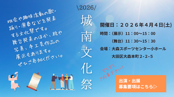 「城南の保健」では組合員のみなさんからさまざまなご意見を募集しています。「楽しかったこと」「つらかったこと」「近所でのできごと」「昔の大田・品川の様子」等々題材はなんでも結構です。編集部あてに送って下さい。文書以外にも絵、写真、川柳も大歓迎です。 送付方法 官製ハガキ、FAX、電子メール(ケータイメールからもバンバン送って下さい) 匿名希望の方はその旨、お知らせ下さい。ペンネームでもけっこうです。